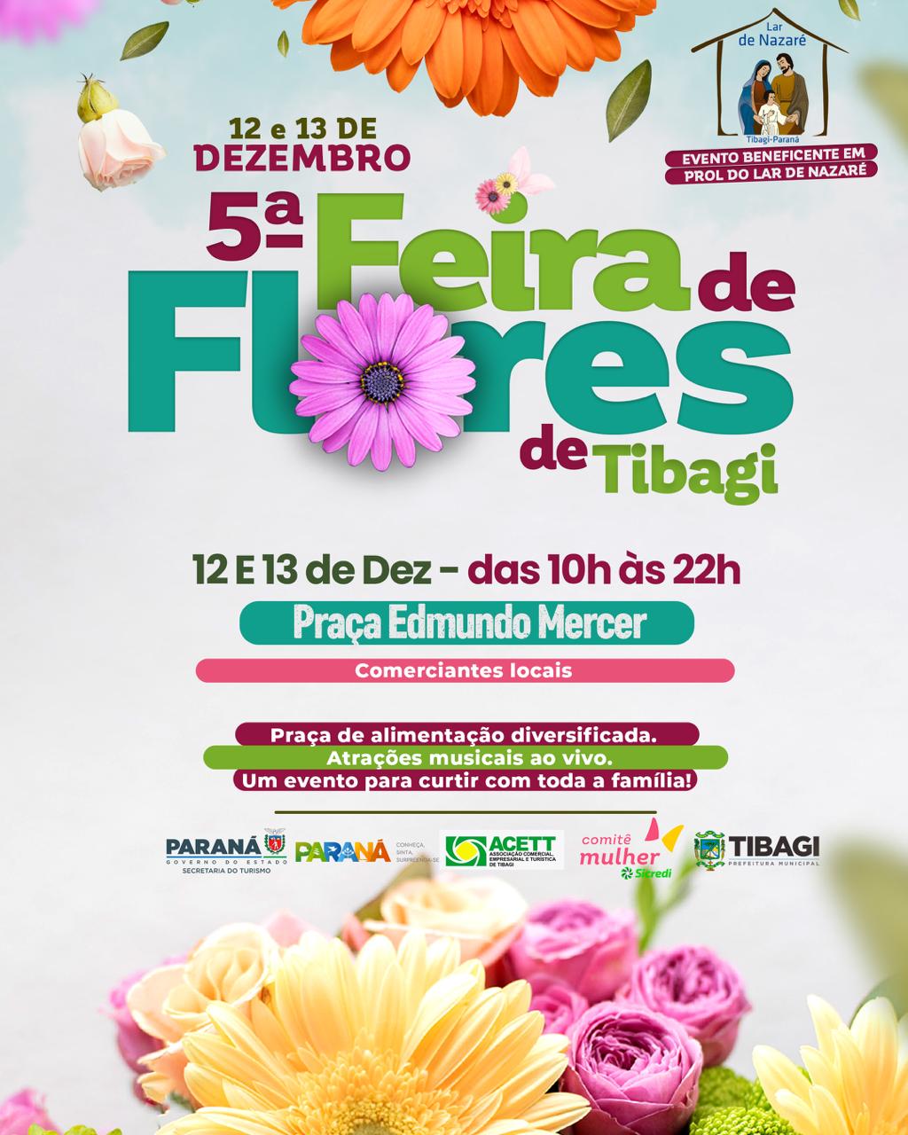 A Prefeitura de Tibagi, por meio da Secretaria Municipal de Turismo e apoio do Governo do Paraná, está organizando a 5ª edição da tradicional Feira das Flores, que acontece nos dias 12 e 13 de dezembro, na Praça Edmundo Mercer, das 10h às 23h.
